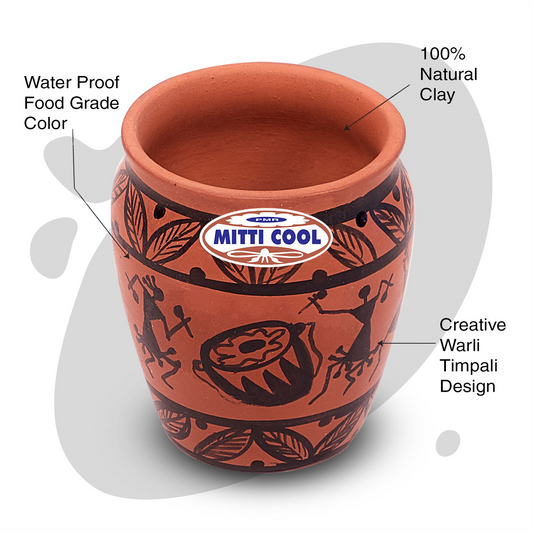 Earthen Clay Warli Timpali Glass Set - 100 ml, 6-Piece | Eco-Friendly, Artistic Red Glasses for Healthy Living