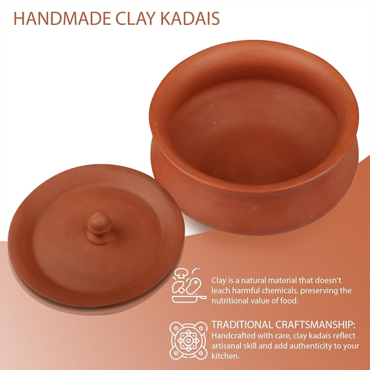Clay Kadai - 1.5 Liters | Eco-Friendly, Traditional Cookware for Healthy and Flavorful Cooking"