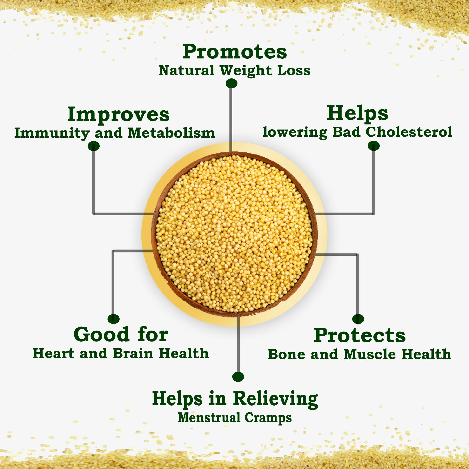 Discover the health benefits of our Natural Unpolished Fox Tail Millet(Korralu). With its natural and unpolished form, it retains more nutrients, minerals, and fiber than processed millet. Improve your overall well-being while enjoying the delicious taste of this ancient grain.