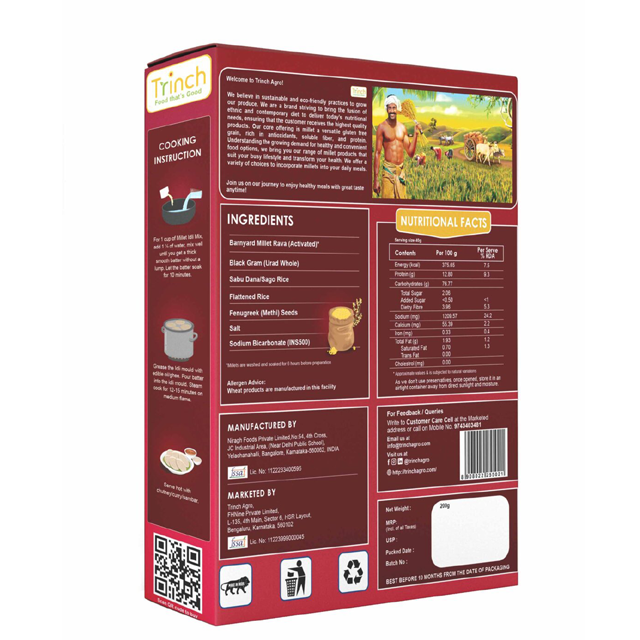 Prepare soft, fluffy, and nutritious idlis with our Fermented Millet Idli Mix. Made with 100% natural millets, this mix is rich in probiotics and easy to digest, making it the perfect healthy breakfast choice for your family. Enjoy the taste of authentic homemade idlis without any hassle.